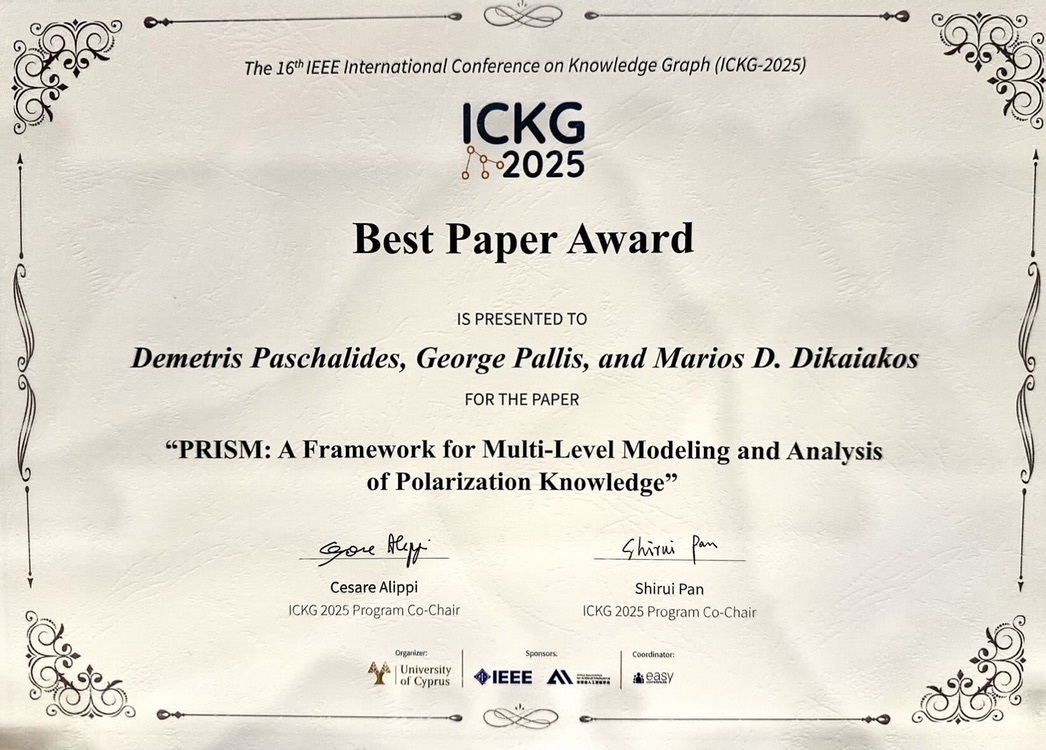 Demetris Paschalides, George Pallis, and Marios D. Dikaiakos, for ‘PRISM: A Framework for Multi-Level Modeling and Analysis of Polarization Knowledge’.
