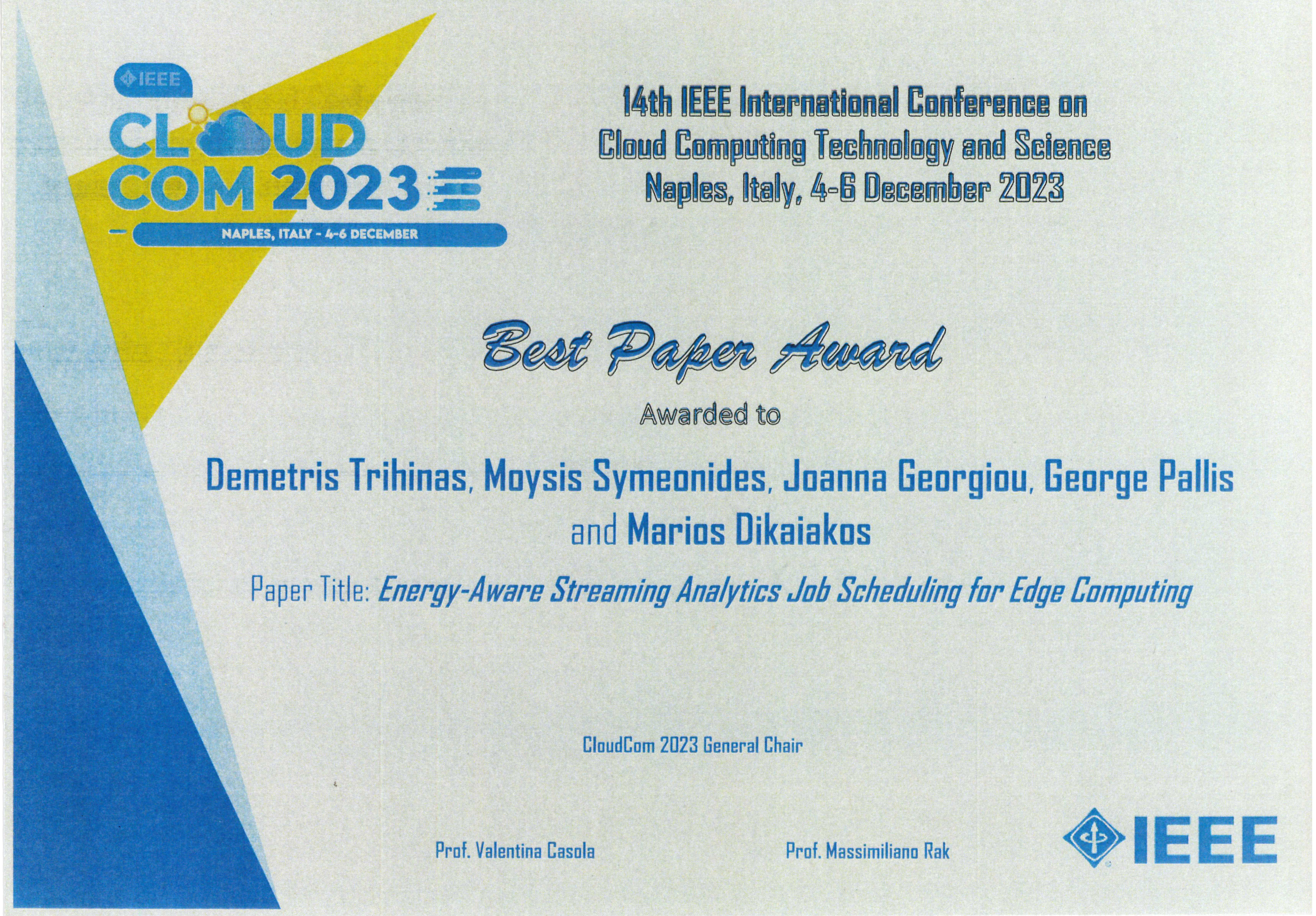 Best Paper Award at the 14th IEEE International Conference on Cloud Computing Technology and Science, held physically on December 4-6 , 2023