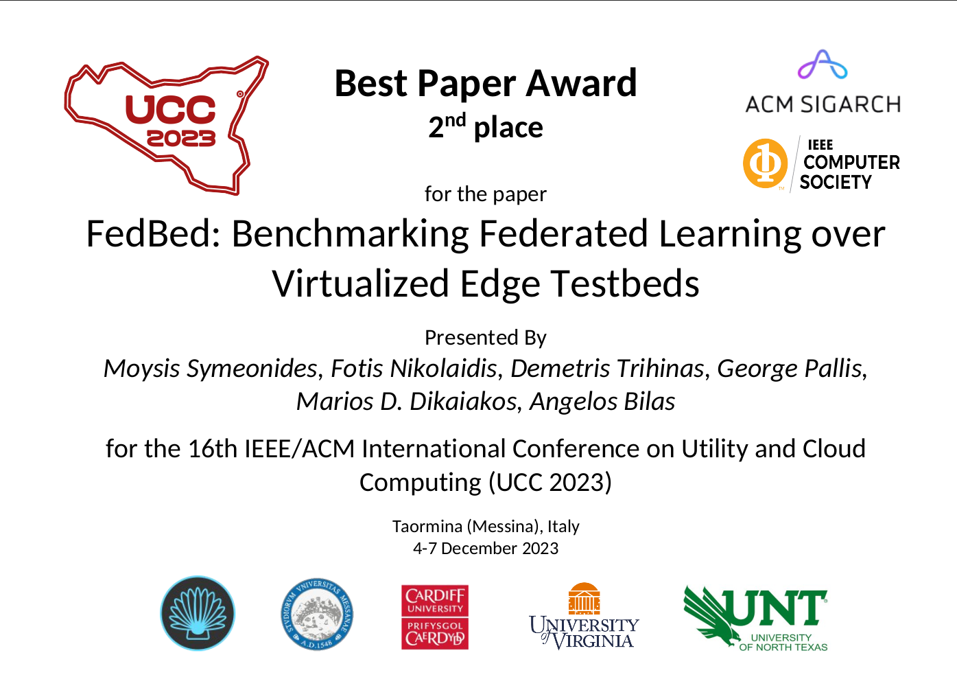 Moysis Symeonides, Fotis Nikolaidis, Demetris Trihinas, George Pallis, Marios Dikaiakos, and Angelos Bilas, for ‘FedBed: Benchmarking Federated Learning over Virtualized Edge Testbeds’.